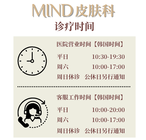 這就是 MIND 的由來:不只是治療肌膚問題,更是透過專業的護膚方案,讓每個人找回自信與好心情,這也是弘大 MIND 皮肤科始終堅持的核心價值,更是台灣赴韓醫美族群值得信賴的選擇。